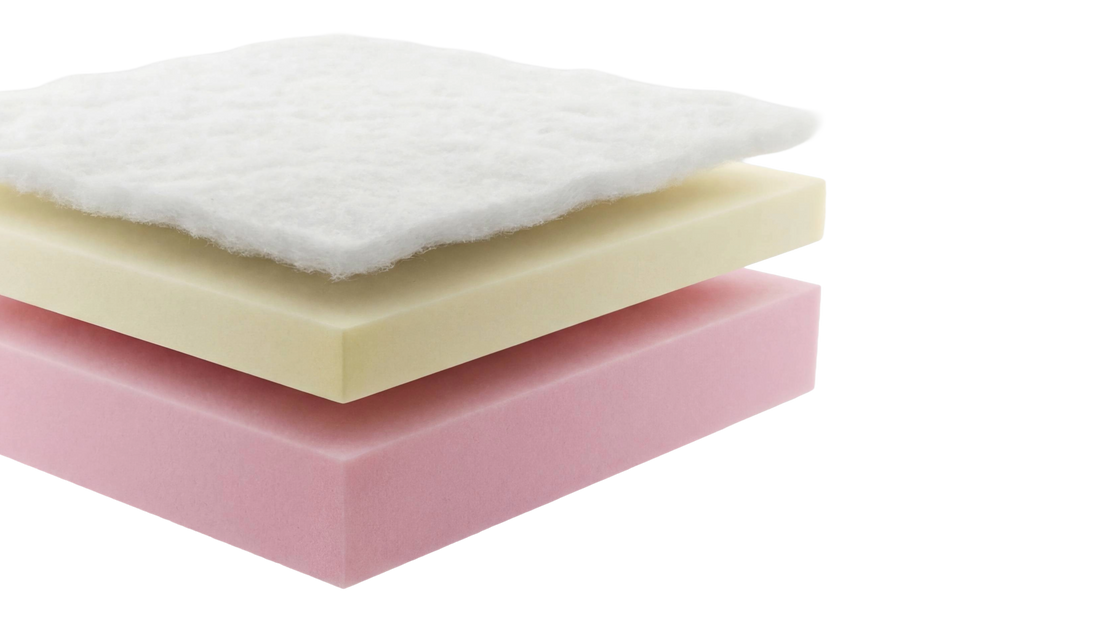 1. Warstwa Komfortu (Owata): Puszysta włóknina, która nadaje miękkość tuż pod pokrowcem i zapewnia niezbędną cyrkulację powietrza, zapobiegając przegrzewaniu.