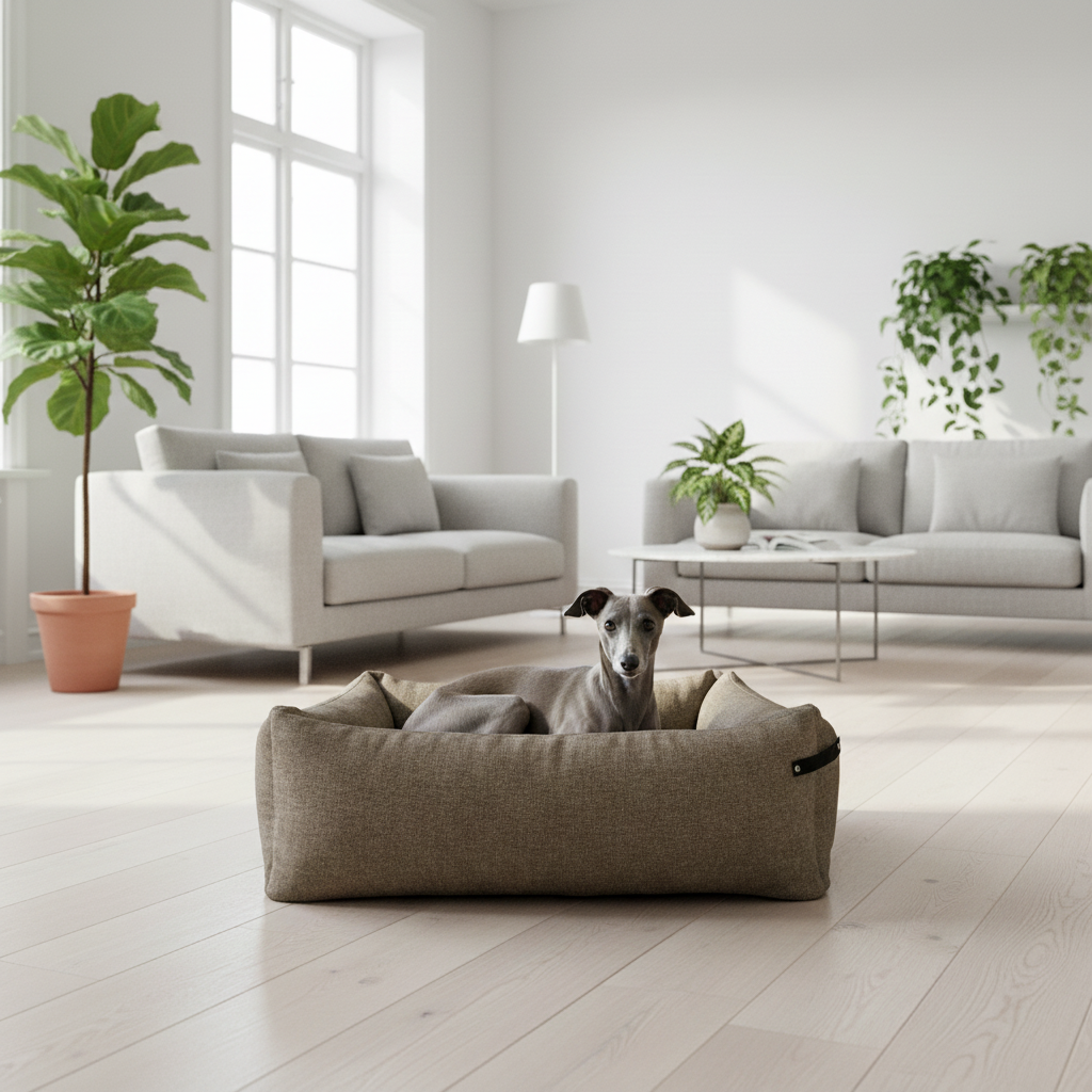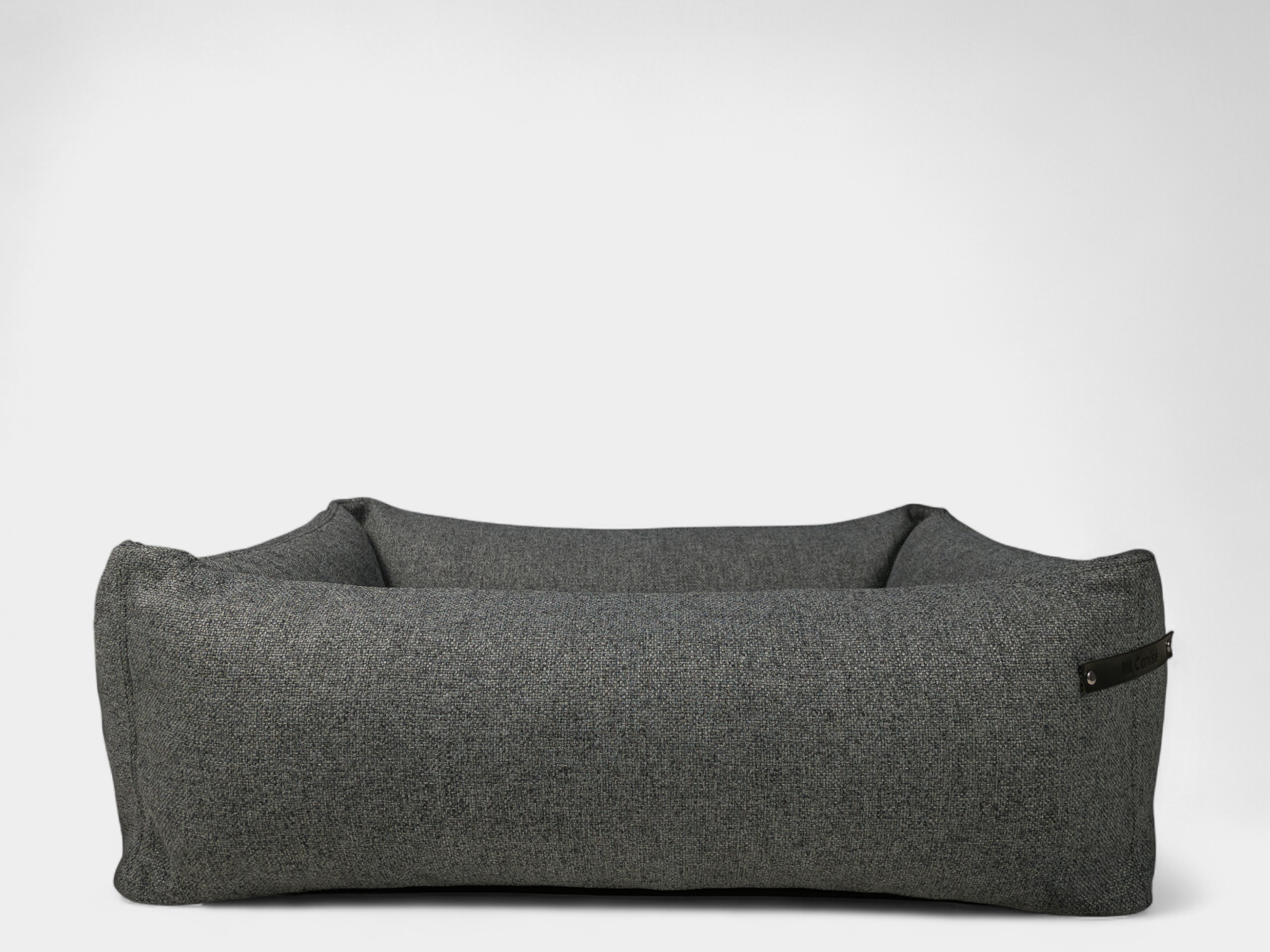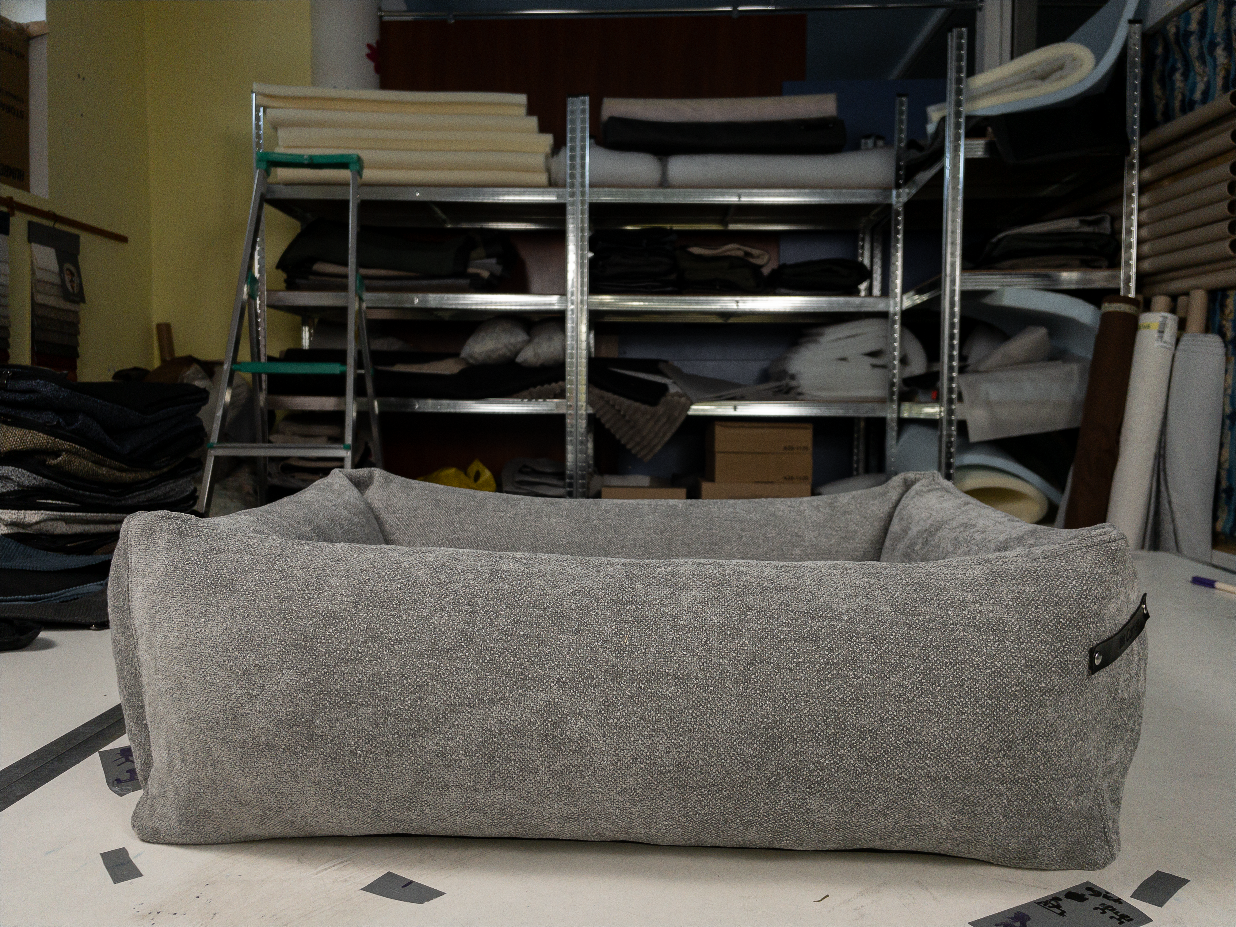 Materac wykonany jest z gęstej, trójwarstwowej pianki ortopedycznej, której składniki pochodzą z Niemiec i są klejone u nas w pracowni bezpiecznym i wytrzymałym klejem. Został zaprojektowany tak, aby utrzymać stabilną formę i nie spłaszczać się nawet pod ciężarem większych ras, gwarantując stałe wsparcie przez długi czas.